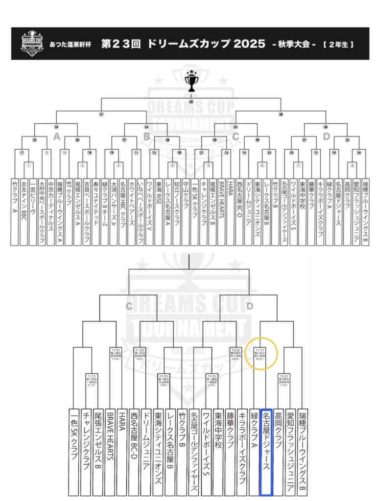 あつた蓬莱軒杯 第23回ドリームズカップ2025-秋季大会-【2年生】トーナメント表