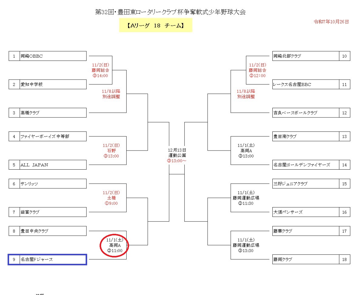 第32回豊田東ロータリークラブ杯争奪軟式少年野球大会 試合予定