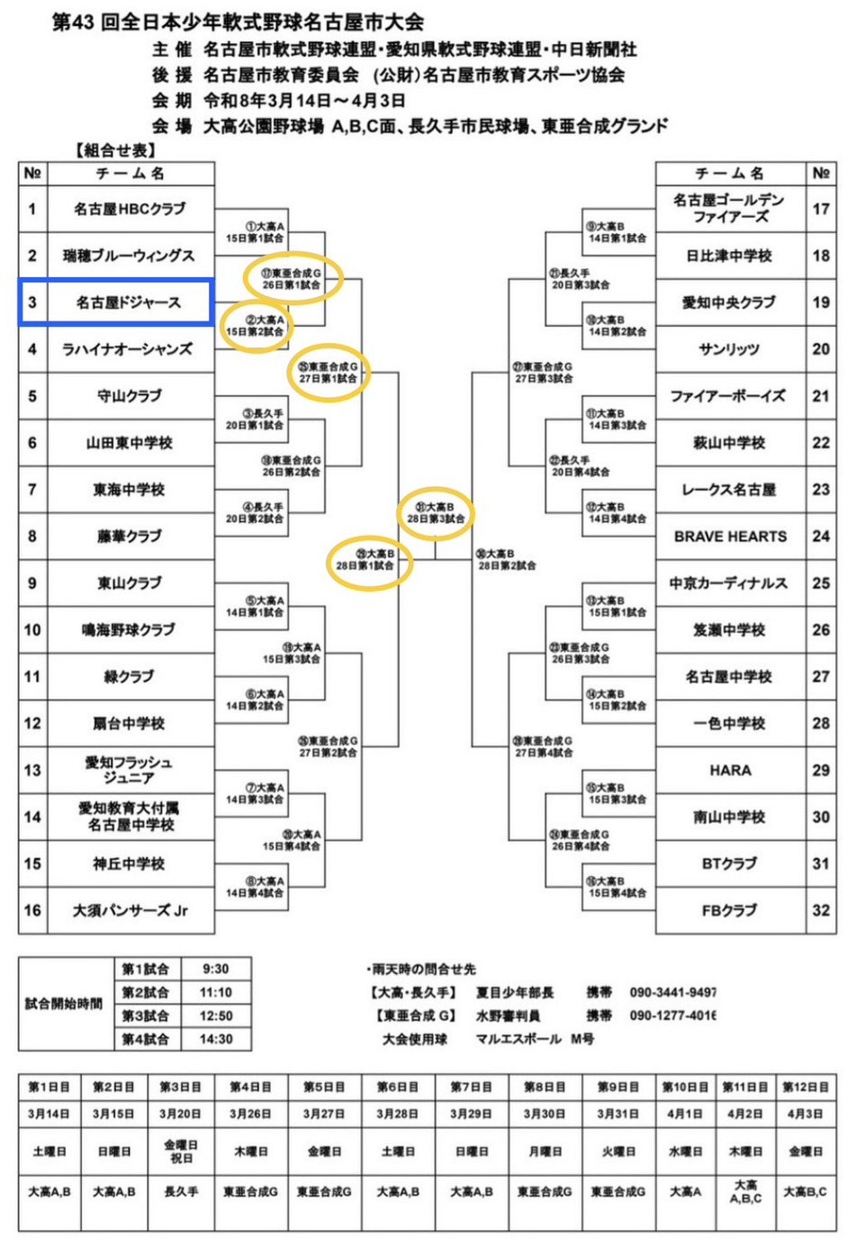 第43回 全日本少年軟式野球名古屋市大会 組合せ表