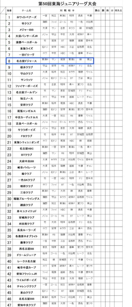 第50回東海ジュニアリーグ大会 組合せ表