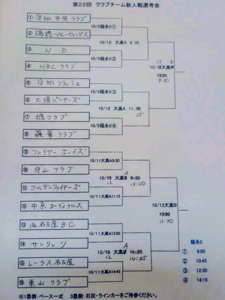 第22回クラブチーム新人戦選考会 名古屋市大会 トーナメント