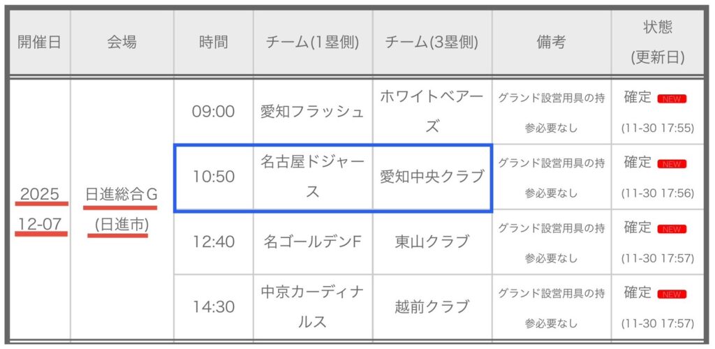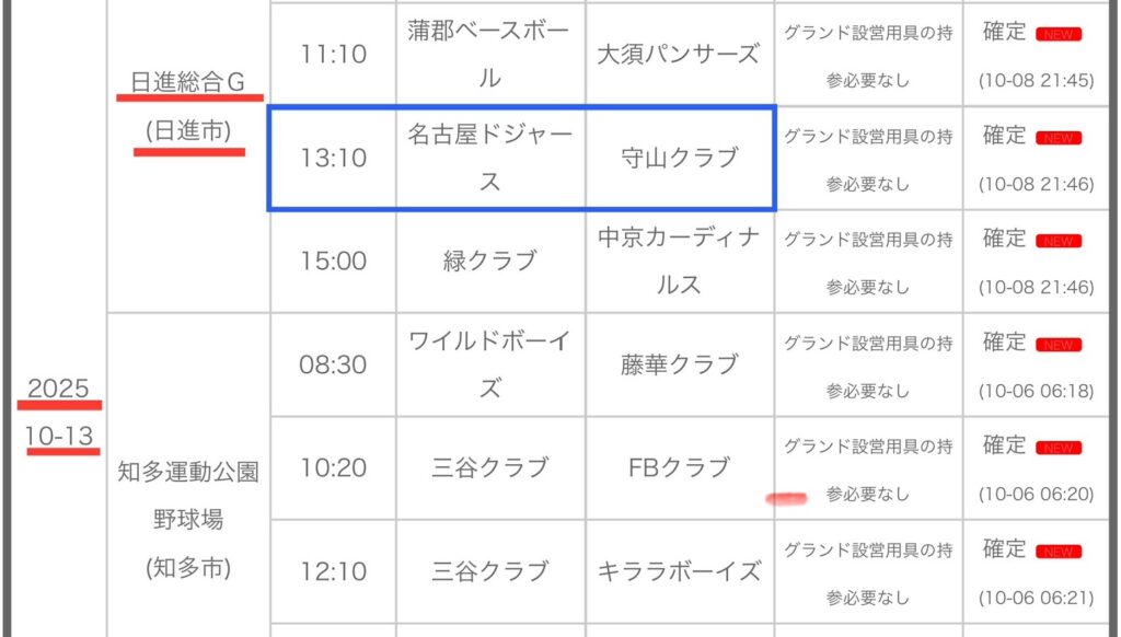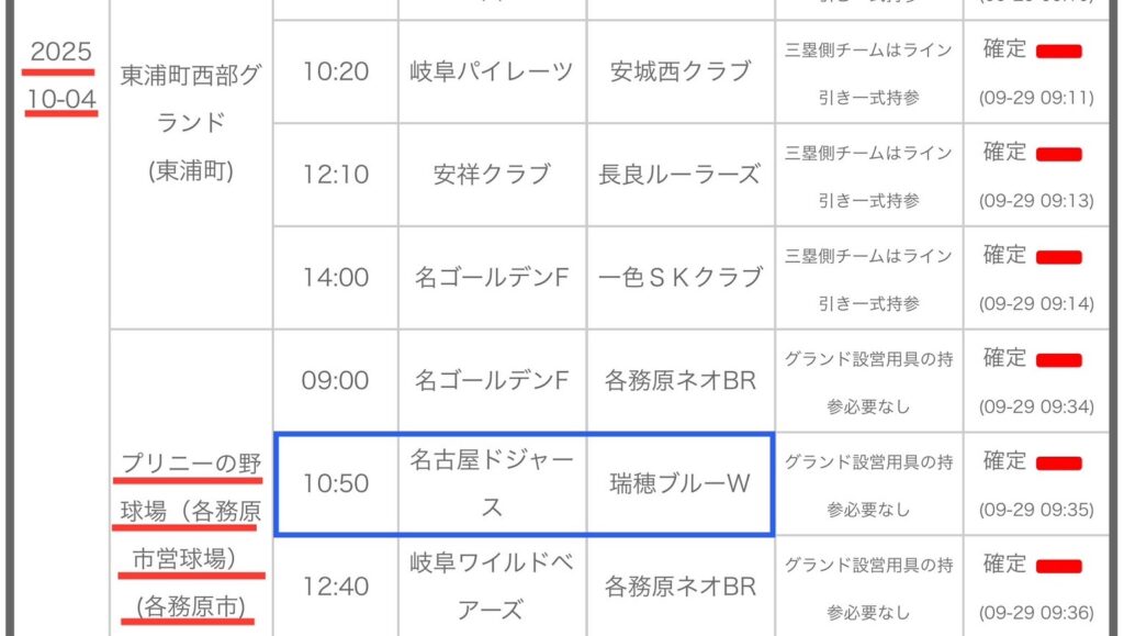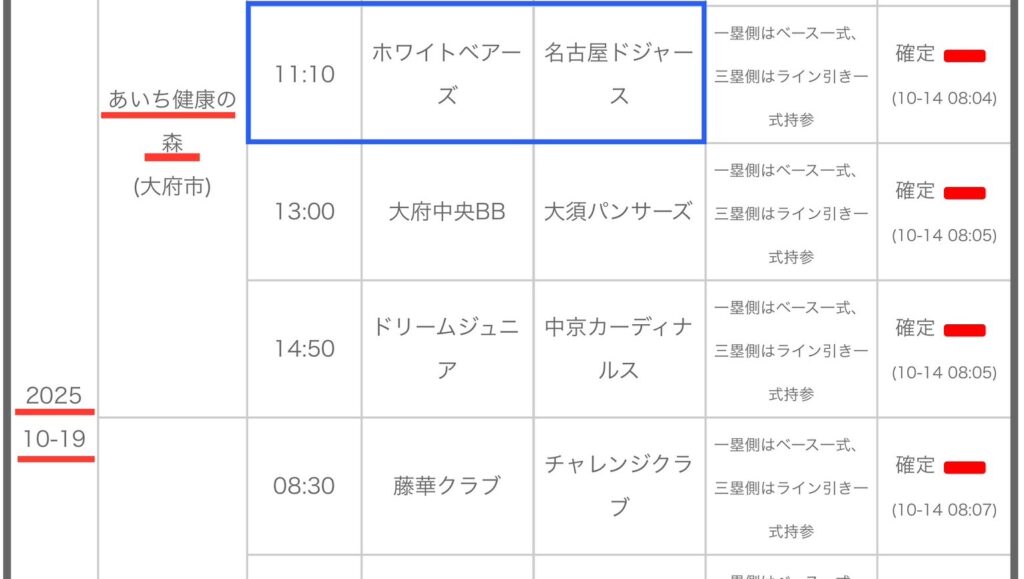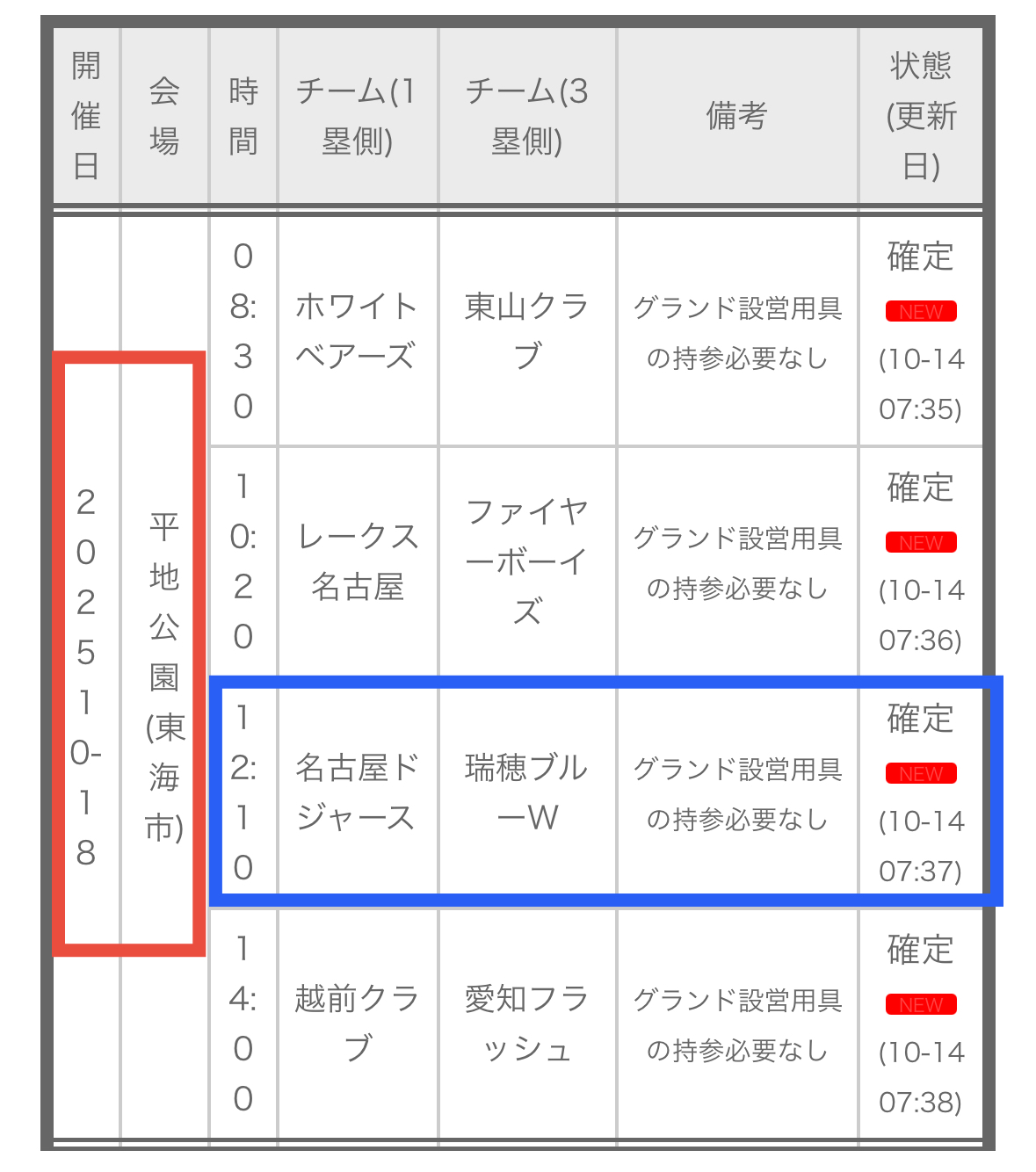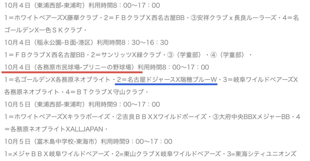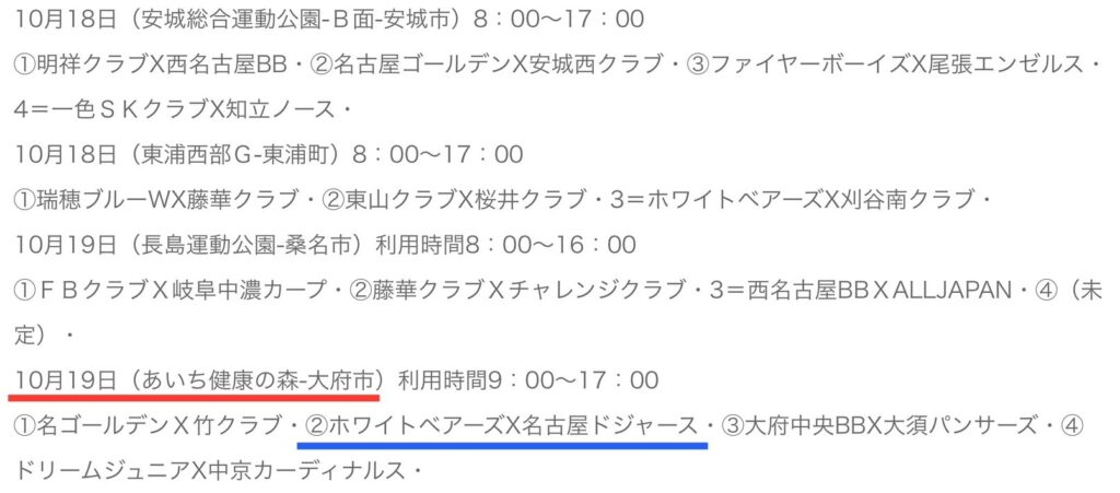 第49回東海ジュニアリーグ大会 試合予定(確定)