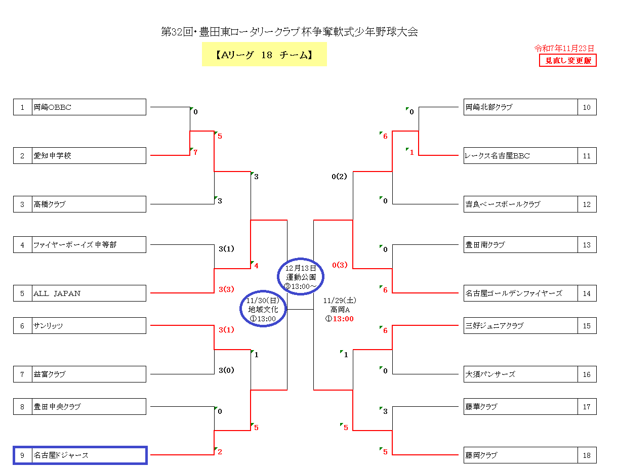 第32回豊田東ロータリークラブ杯争奪軟式少年野球大会 試合予定