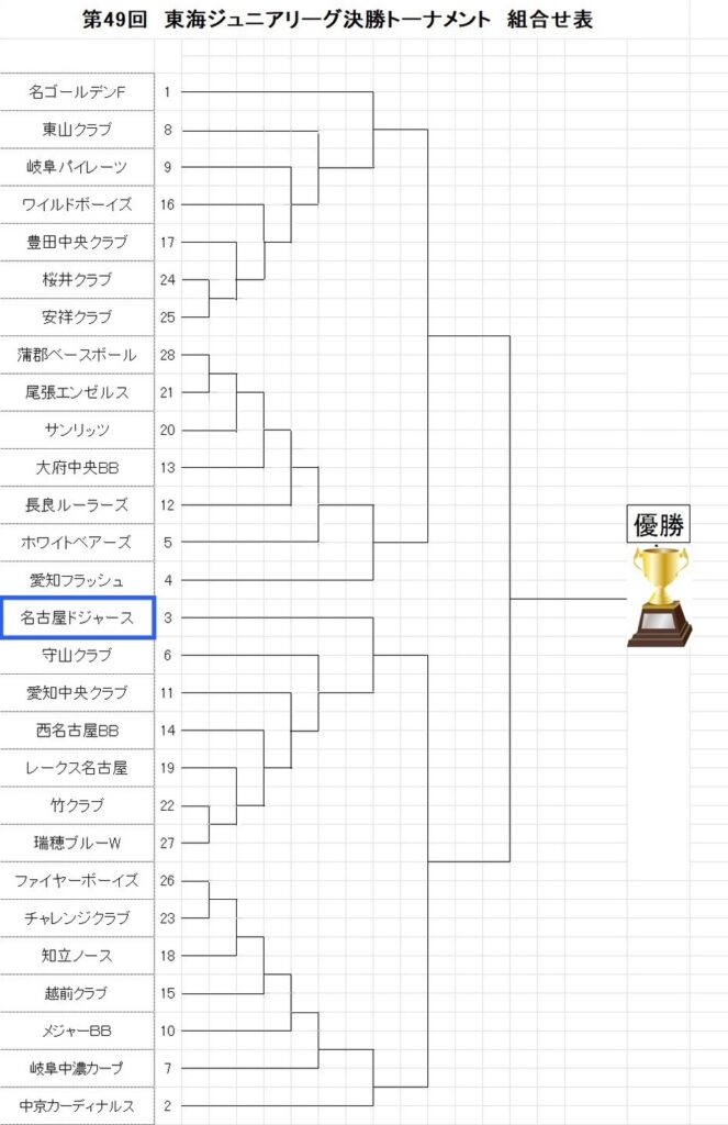 第49回東海ジュニアリーグ大会 決勝トーナメント 組合せ表