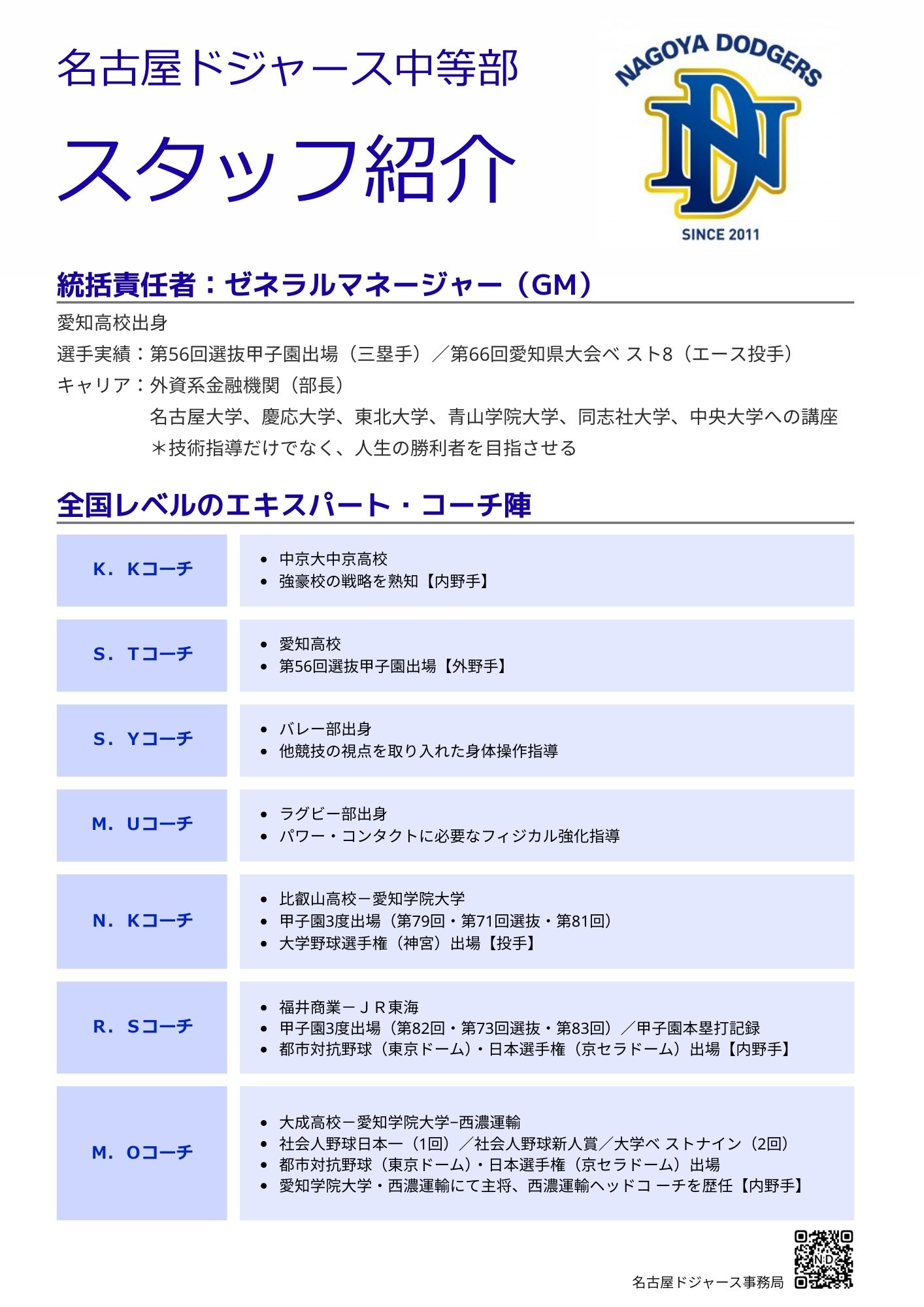 野球への熱い念いを持った選手たちと共に汗と涙を流すことを熱望しています。