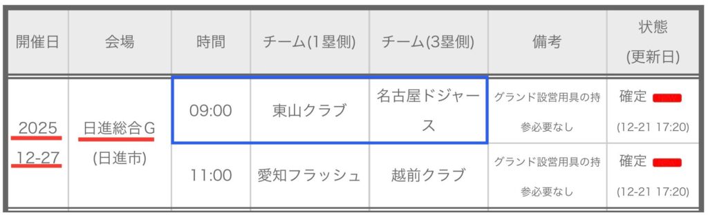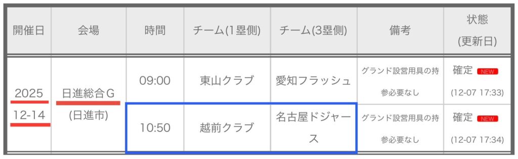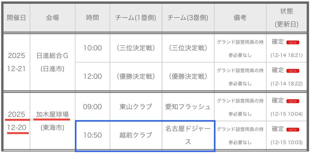 第49回東海ジュニアリーグ大会 試合予定(確定)